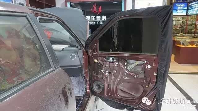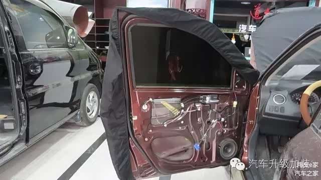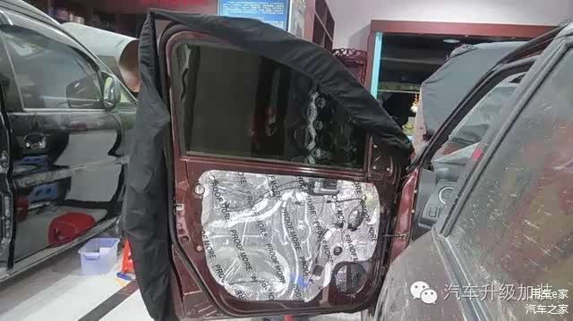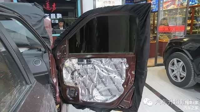 车门里层隔音做完后,外面在贴上一层减震板,车门隔音最好做双层隔音。
