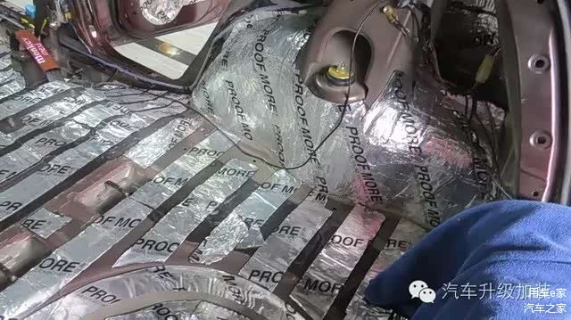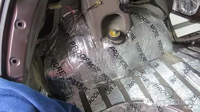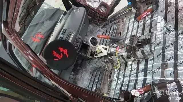底盘隔音。由于底盘面积较大,所以施工内容也较多。先将底盘清理干净,再贴上一层减震板。底盘低音能够抑制底盘部位的隔音,特别是车辆在行驶在颠簸路段的时候,噪音能够有效地得到抑制。