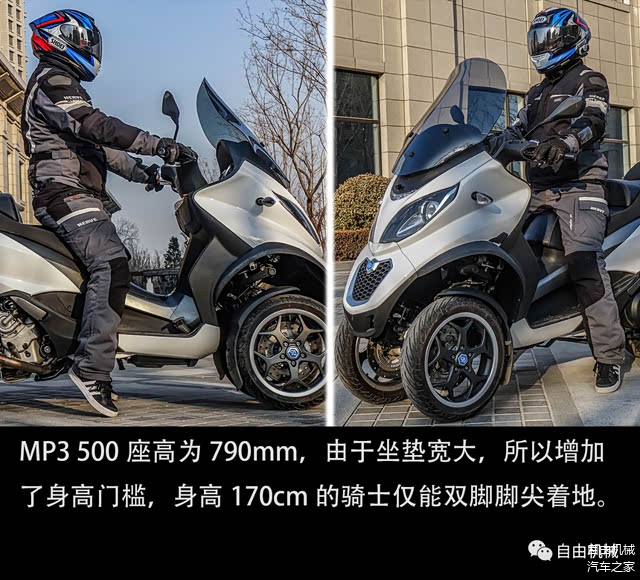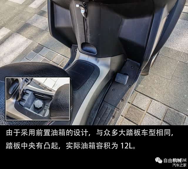 舒适性方面,MP3 500拥有宽大的空气导流件以及柔软的大坐垫,这让它在骑乘时拥有十分惬意的体验,但是在腿部空间上就要说道说道了。由于MP3 500设置了脚部联动刹车踏板,让原本就不太宽裕的脚步空间十分局促,在长时间骑行时,双脚(尤其是右脚)无法伸展放松,只能长期保持一个姿态。
