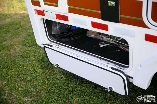 下方的储物舱内可放置行车工具,如电源线、遮阳棚操作杆、水管及扳手等常用物品,内部容积表现不错。