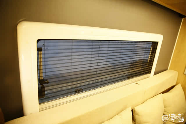 小额头处有着采光面积不错的双层保温弧形天窗,带有遮阳帘以及防蚊帘设计,同时可以外推打开透气。