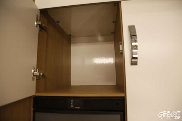 冰箱上方的储物柜采用与冰箱同款配色设计,细节到位。内部纵向深度表现不错。