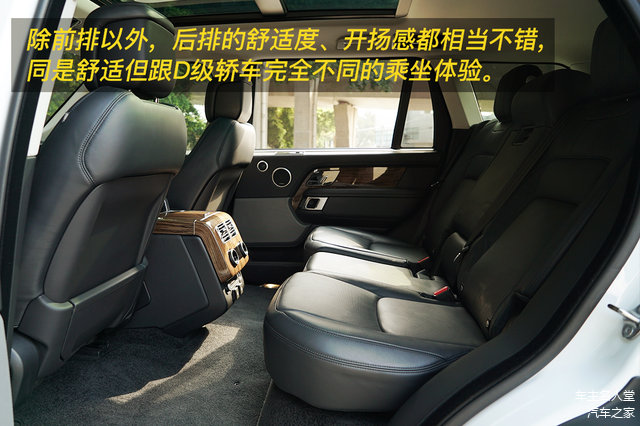 后排的舒适感真心非常好,一个是加长轴距车型,所以后排空间就是巨大;另一个是坐姿高看得远,再加上有全景天窗,揽胜的后排坐起来的体验真的是要比D级轿车和MPV保姆车要好很多。