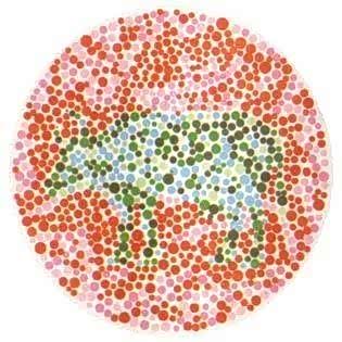图六,和上图一样,这是一张无解图,只有红绿色盲和红绿色弱者才能看出图中的内容,而正常视觉和全色弱者,什么都看不懂。