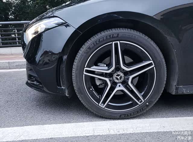 国产A和上一代A整体我觉得变化并不是特别大,有一些CLA的风格,比如车头更尖一些,车头灯就是缩小的CLS,尾灯改成了目前流行的横置LED光源尾灯。另外还加上了应该是史上尺寸最小的黑色AMG轮圈!哈哈哈!轮胎也是印字很好看的米其林 Primacy 4。