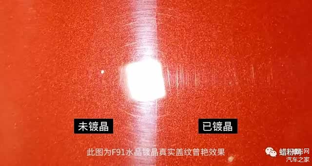 F91算是一款针对DIY用户量身订做的傻瓜级产品,即使没有任何施工经验也能轻松操作。另一个优势就是出色的增艳与盖纹性能(车蜡的特点),这是决定镀晶施工效果的重要因素之一。