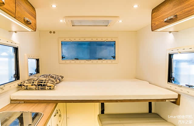 NEW DAILY拓步者将空间合理利用到最大化。同时,巧妙的利用前车后车通道设计的可干湿分离洗手间,以及房车专用冰箱与烘干一体式洗衣机的双重组合,都尽显房车的贴心细节。房车内部整体上以白灰色调为主线搭配其游艇实木柚木,高端大气简约极致,给人以干净高档的高品质感受。