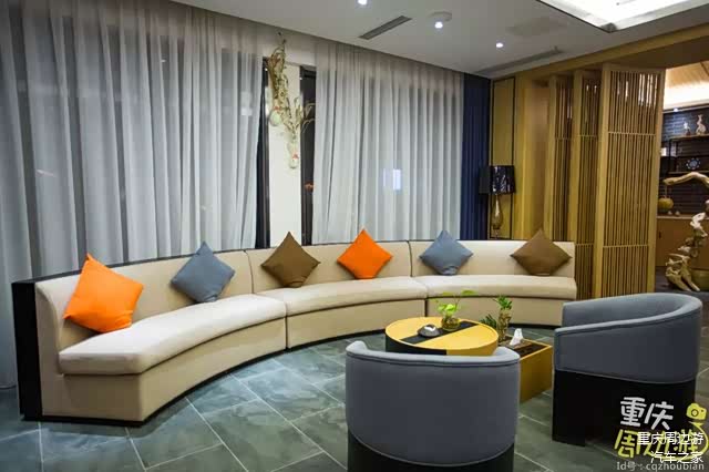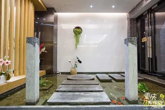大厅里目之所及尽是:舒适感与平和细致,各类元素结合,布局细致独特,花的香、鱼的动、物的静,满满都是舒适的苏州园林风。