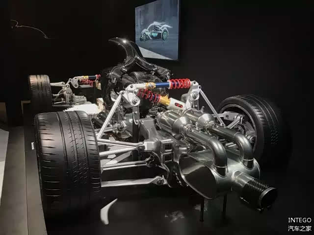 Project One 的动力系统并非完全来自 F1 W08 一级方程式赛车,AMG 称之为 W06 W07 W08 三代 F1 赛用引擎的技术结晶结合,但引擎的工程设计还是源自 W08 —— 通过整合的机械结构与电驱动涡轮增压系统将空气供给到引擎中,其中排气涡轮位于排气口附近,而压缩机安装在靠近车顶的进气口,通过一根长轴将两者连接到一台80千瓦的电机,此举可使涡轮增压器消除迟滞现象。发动机热效率达到43%,要知道AMG 4.0升BitturboV8的热效率仅有25%。由于尚未有双离合变速箱能承受过千匹的动力输出,所以Project One将使用AMT变速箱。在1.6L V6发动机的极端作用之下,发动机寿命预计只有5万公里。对,就是五万公里。Project One是将F1机器移植到公路车中的神作,所以不需要吐槽——如今F1引擎一个赛季只跑不到5000公里,知足吧。