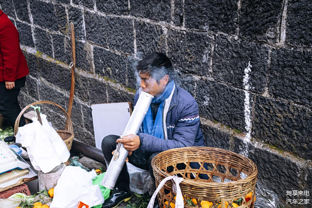 忍法—烟熏之术,请问这位大叔是雾隐村的忍者吗?和大叔一聊才知道,这是云南十八怪——火筒能当水烟袋。这个大套筒里面装清水,用来过滤焦油,烟的口感会更清凉。