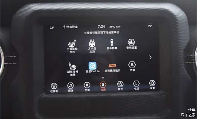 搭载7寸的中控屏幕,第四代Uconnect操作系统加入其中,提供CarPlay和Baidu Carlife操作系统,便利度提升的同时触屏反应也很灵敏。