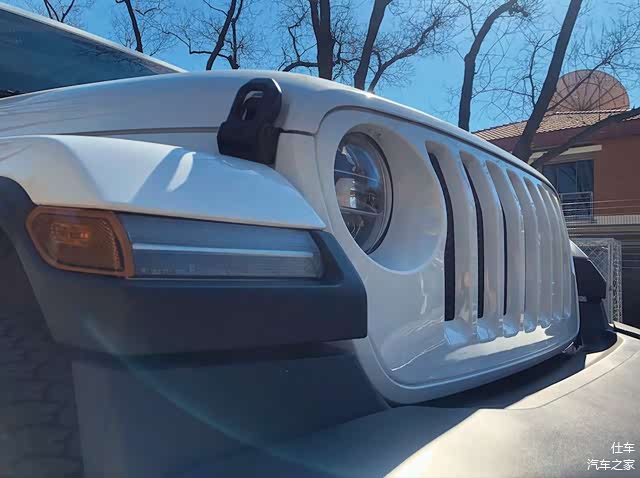 这一代牧马人,外观方面的变化其实还是很多的,但你咋一眼看上去,又很难找到哪里不同,依旧是硬派造型风格。但你细节会发现七孔进气格栅变得更大了大灯组改为了圆形LED光源,提神了不少,