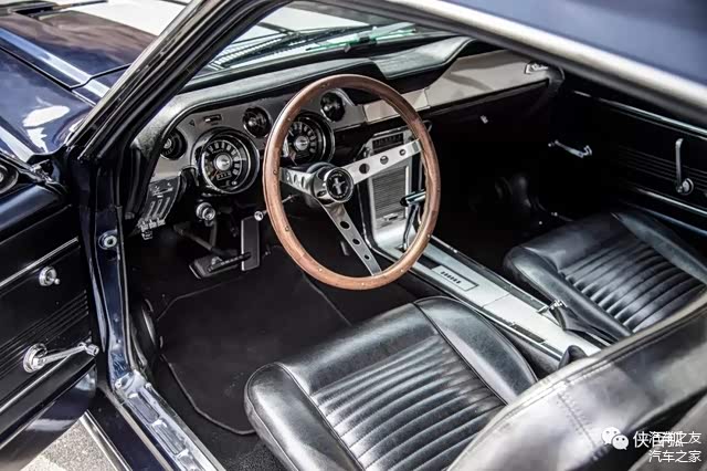 实际上令我略有微词的是套装的最终成品涂装,这经典而亮丽的白色竖条纹涂装。在我的记忆当中以及遍寻资料之后发现,福特官方从来没有任何一台1967 Ford Mustang 或者GT是原厂喷涂过这个涂装。因为看到这种涂装的Mustang车迷通常会想起一个人---Carroll Shelby(卡罗尔·谢尔比),这位堪称美国高性能车灵魂人物的Shelby先生,身兼赛车手、汽车设计师以及企业家。在Ford Mustang大获成功之后,福特委托Carroll Shelby在其基础上打造一款高性能车型。由此诞生的历史上第一款“Shelby Mustang”——1965款Shelby GT350,搭载了306马力的4.7升发动机,匹配4速手动变速箱,车身涂装为“温布尔顿白”加蓝色条纹,自此竖线条纹涂装以及车头替代奔马车标的眼镜蛇车标,均成为高性能车迷心中不可磨灭的印记。