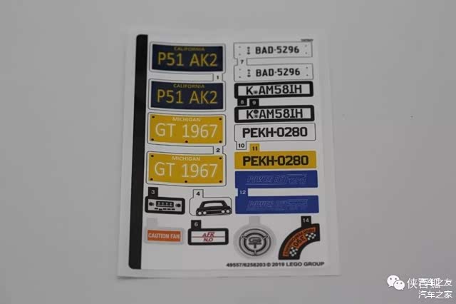 就在发稿前一小时,我收到了来自于设计师Mike的回信,作为一个9岁便接触Hot Robs改装文化的小车迷,Mike信中也解答了一些有趣的设计梗,比如贴纸上的英国车牌来自于为LEGO Creator Expert设计包装以及说明书的设计总监名字与生日、澳大利亚车牌则来自于Mike的姐夫,一个地地道道的Mustang车迷众多收藏品之中的一个车牌复刻,而尾箱气瓶上的AFK则是致敬一位供应商的ideas,他建议将搭建时作为千斤顶的多余零件灵活变身为气瓶增加戏份,看来Mike应该不玩WOW,要不不会使用AFK的,LOL!