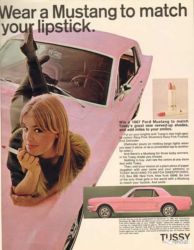 其实这并不是Mustang第一次出现粉红色涂装,早在1964年5月,第一台粉红色Mustang便已经诞生,无人知道这到底是福特公司的最终市场营销策略,还是根本就是花花公子杂志本身的需求,反正从那时候开始,花花公子大亨Hugh Hefner的各种收藏名车之中,被称之为Playmate Pink的粉色涂装比比皆是。就连前美国总统克林顿都留有一张开着粉红色野马的照片且流传甚广。