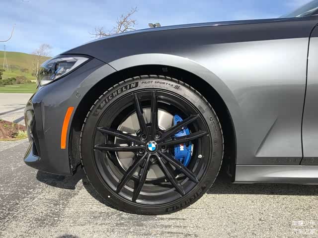 和上边那套多幅式的轮毂相比,这套黑色双五辐轮毂感觉也很有运动范,这是官方出品的代号791M的19英寸轮毂,轮胎是米其林Pilot Sport 4S系列,轮胎规格为前轮225/40 R19,后轮255/35 R19。