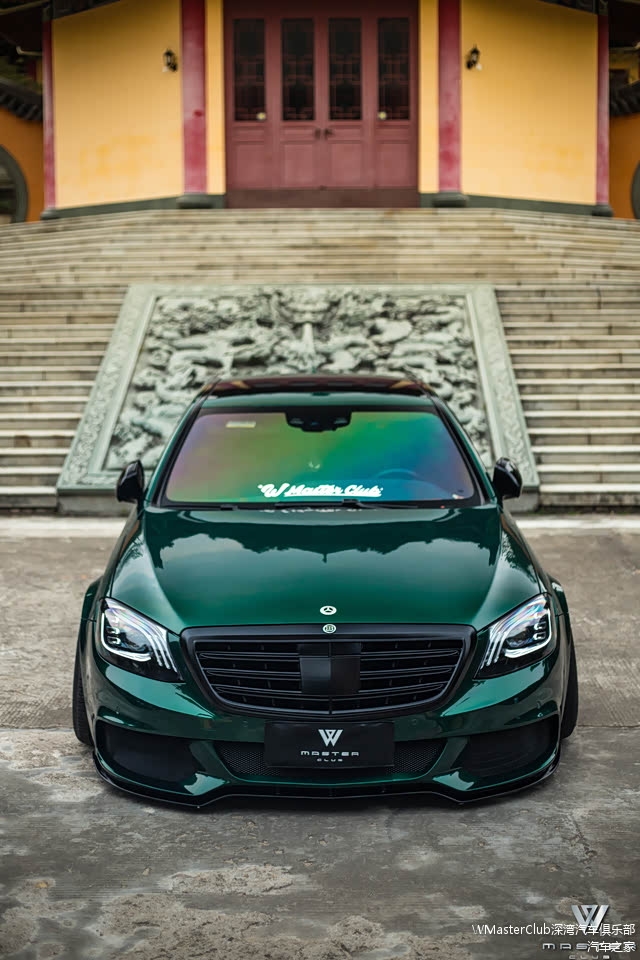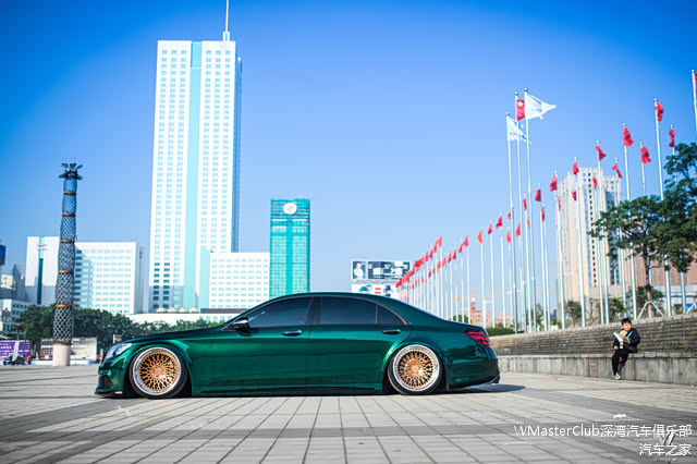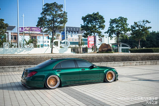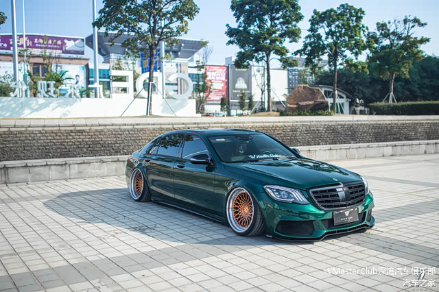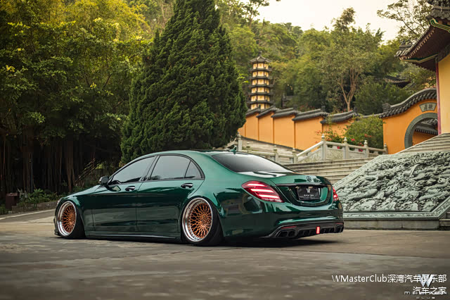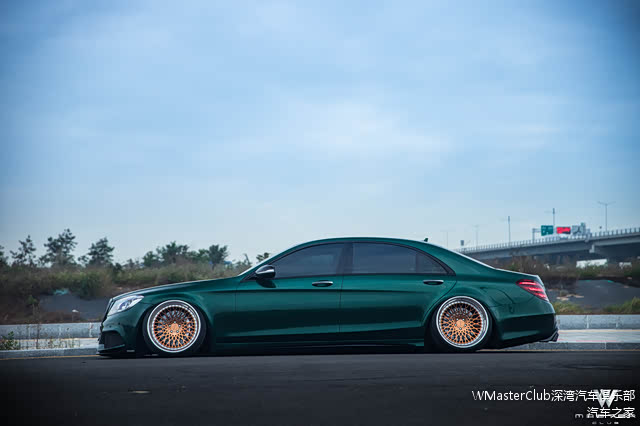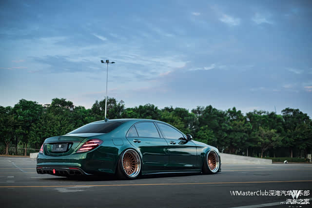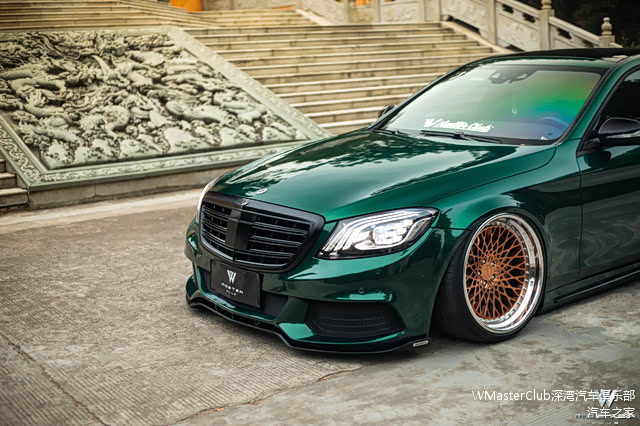 转变为网红骚绿的事情,是它名声最旺的时期。因为那段时间这样的墨绿色本身就是奔驰系列的一个新的主流色,即使是原车的情况下已经是十分夺人眼球的配色,更何况我们的S已经有了很棒的“低趴姿态”,整体的线条感、颜色、姿态就会显得非常非常融合!获得了非常多人的赞赏!