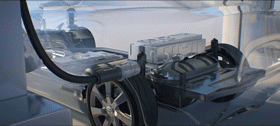 低速时,会有多余的电量产生,这份电量会被储存在电池组里(记住,不是燃料电池组)。高速时燃料电池组和电池组同时放电,来为车子提供动力。