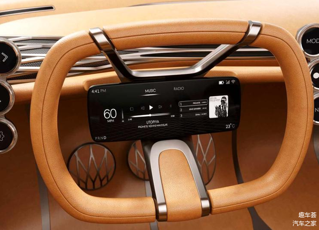 内饰方面,全新样式平底多功能方向盘、仪表盘设计别具一格,左侧是一块小液晶屏,右侧则是机械仪表用来显示车辆时速。