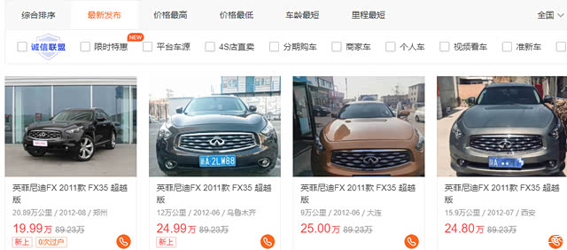 这是二手车之家的车辆报价,它有沃德十佳VQ发动机,超强的大排自吸,还有新潮的设计,21寸大轮毂等等优点,原价八九十万的车现在才二十万左右,都说日系车保值,而它却是个例外。