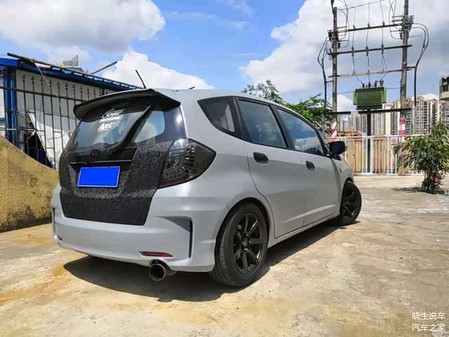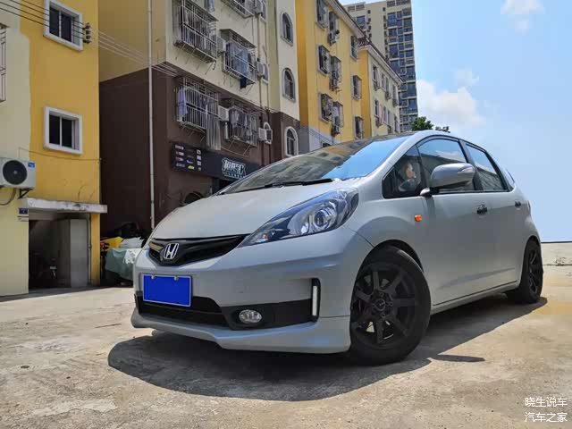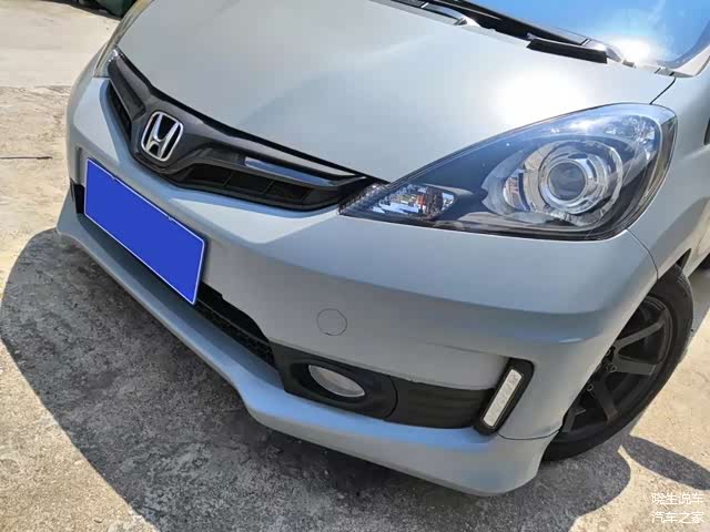 首先是外观方面。可以看到,车主为爱车换装了2011款日版飞度RS的前后保险杠,确实是更加帅气、动感了。