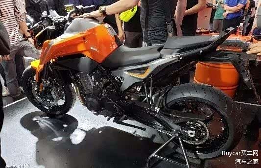 紧凑化的设计、造型凶狠的“剑道脸”车灯,其依然延续了KTM街车的家族化设计。但在动力方面,虽然排量仅增加了100cc,但新车升级了KTM首款并列双缸799cc发动机,最大功率105马力,峰值扭矩87牛·米。