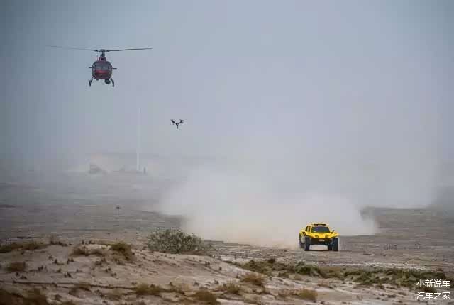 沙漠、直升机、极速狂飙的赛车,有没有欧美大片的既视感?但在这样的条件下赛车确实对人是一种极大的考验,白天温度可达30摄氏度以上,到了晚上会降到只有几度,昼夜温差可达近30度。除此之外还要随时面临风沙扬尘的干扰,和极度干燥的气候。