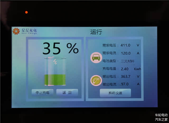 经过实测,其最大输出功率为35.18kW(363.7V,97A),远远达不到DX3EV需要的411V,120A,充电速度大打折扣,属于典型的“心有余而力不足”。
