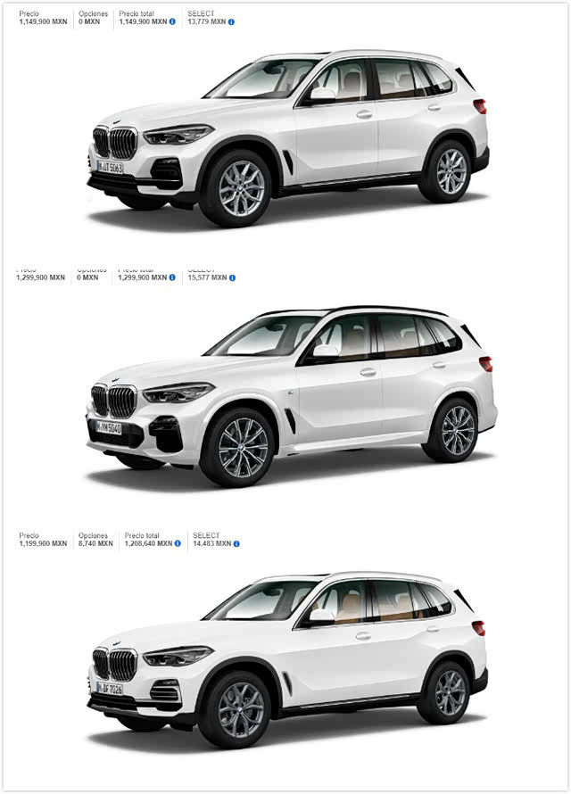 好了,介绍完加规车型,再来看看墨西哥规格的车型。墨规的X5在港口的车源也相对较多,主要是以中低配为主。总体来说,墨规的车型配置相比中规与加规入门版车型配置都要低很多。入门的价格相比中规与加规也是便宜很多。目前,在港口,墨规车型主要有三款车型,分别是xDrive40iA Executive,xDrive40iA M Sport,xDrive40iA X Line。墨规车与加规车相比,最大的区别就是没有选装包,只有单选的配置。