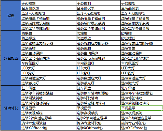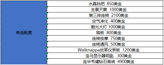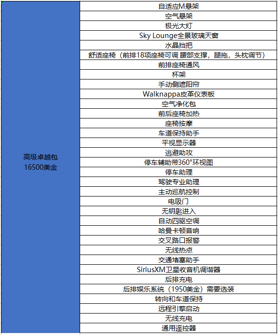 这些选装包就是加规车型选配最多的选装包。然后就是最后一个选装包就是 xOffroad包,此款选装包里面包括了自适应双轴空气悬架以及M Sport差速器。