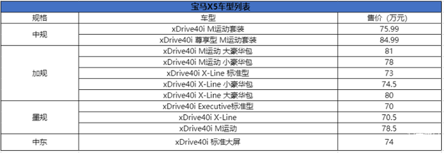 2.入门版价格低。墨版的起步售价在70万左右,相比中规还是要便宜近6万左右。虽然相差不多,这对于只想买辆X5的朋友来说还是挺有性价比。