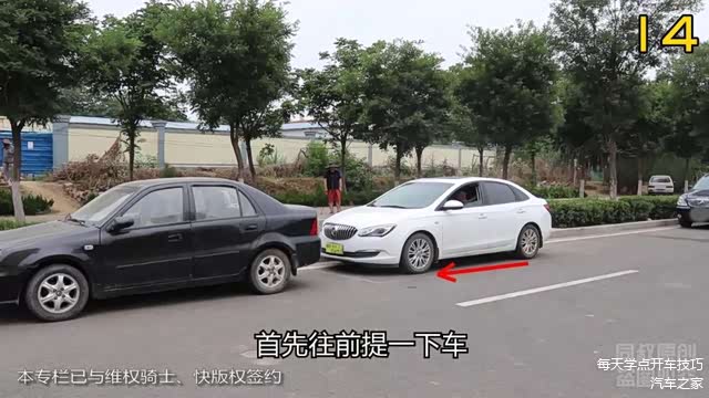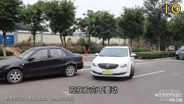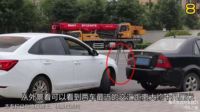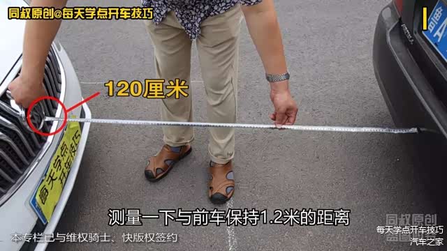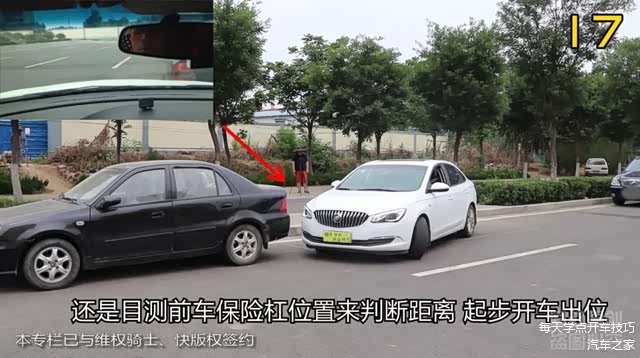 也更节省前面的距离,还是目测前车保险杠位置来判断距离,起步开车出位。
