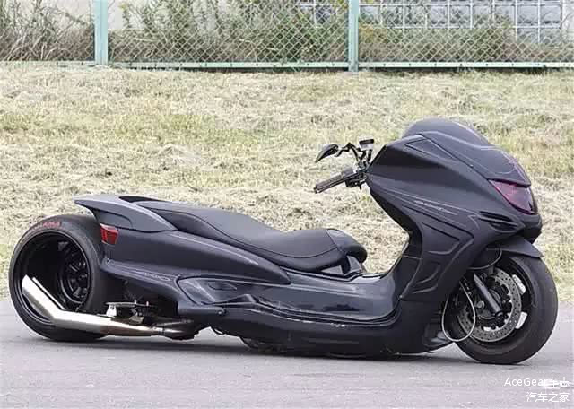 这类改装均以大型休闲旅行车为主,像本田金翼,还有这样的三轮Trike版本,售价自然也不低,很多人认为这已经够拉风了,但日本人却不这么认为。他们将车辆头部进行保留,把尾部换装了汽车的尾壳、尾灯和排气,就像这辆黑色的金翼加装了雷克萨斯的车尾,整个体积和汽车差不多,真的很霸气!