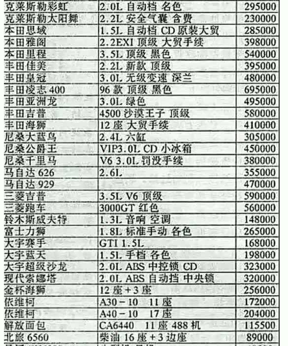 除了德国车,日系车在当时的价格也很坚挺,例如现在卖得飞起的雅阁,在当时的价格可以说是上天了,竟要39.8万的高价,顶得上现在的C级轿车了。