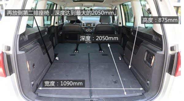 第10款、大众夏朗,最大的亮点就是实现了副驾驶全平放倒,这样的好处就是不论是身高多高的人睡在里面基本没有压力,同时拉较大件或较长的货和载人完全胜任,从图中也可以看出MPV的优势。