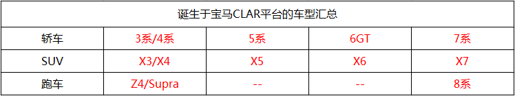 丰田全新Supra同样是宝马CLAR平台的产物,虽然挂着丰田标志,但全新Supra的动力系统,变速器,底盘部件均与宝马Z4同享。可见,CLAR平台已经完成了从中低端到高端车型的全面覆盖,体现出新平台强大的车型兼容性。