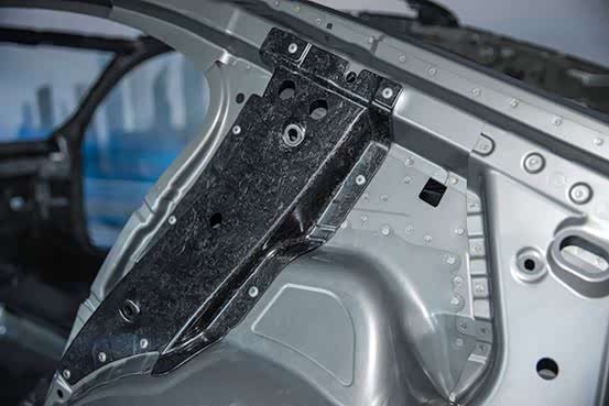 新7系白车身具备了轻量化和高刚性的特点,由碳纤维增强复合材料(CFRP)、铝以及钢材构成的创新复合车身打造,将碳纤维材料包在了钢质材料的中间形成了三明治结构,7系因此减重超过130kg。