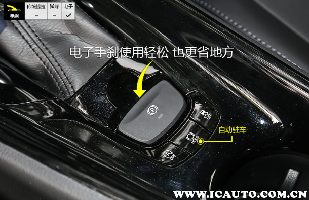 电子手刹不用我多说,其实就是传统手刹的升级版本,省时省力省空间,用起来也很方便。