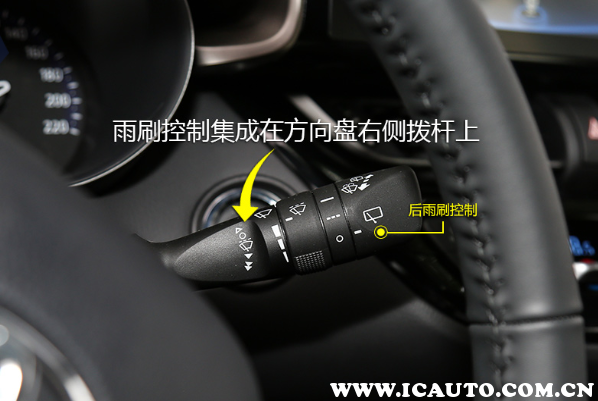在方向盘背后,汽车灯光控制和雨刷控制都会分别集成在拨杆上,部分车型还会有自适应巡航控制。