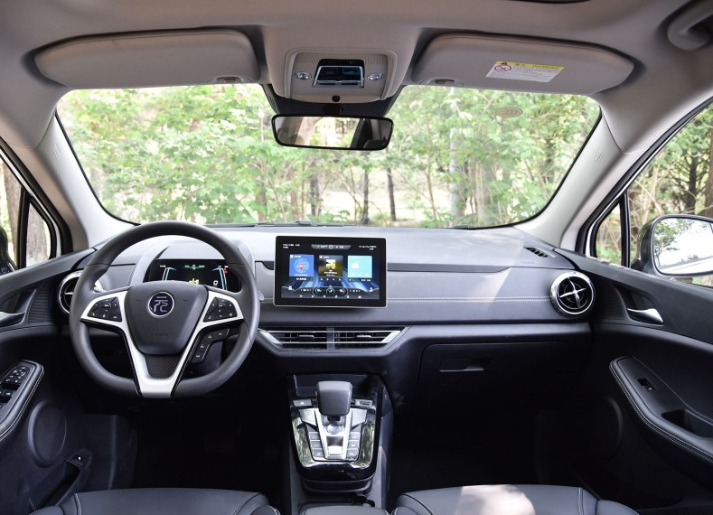 在内饰上,比亚迪-元EV535采用了家族式最新内饰设计,造型设计风格主打简约整洁与科技范。8英寸液晶仪表的配置在同级相当罕见,悬浮式是当前的潮流设计手法,1024X600高分辨率配合前卫炫酷的动态UI设计,在功能使用切换时还带有动效转场,菜单操作也十分简洁。内部还提供了三种主题可供选择,如此前卫、个性化的风格很对年轻人的胃口。可横竖屏旋转的10.1英寸中控屏功能强大,内置比亚迪Dilink智能网联系统,集智能语音、蓝牙通话、蓝牙音乐、数字电视、全景倒车影像、4G热点、拓展APP等功能于一体。其可根据APP不同的使用要求自动旋转,也可通过屏幕及方向盘上的快捷按键手动调节旋转。变速箱档把区域同样设计为悬浮式,电子挡把周围集成了启停、驾驶模式切换、空调控制等按钮。