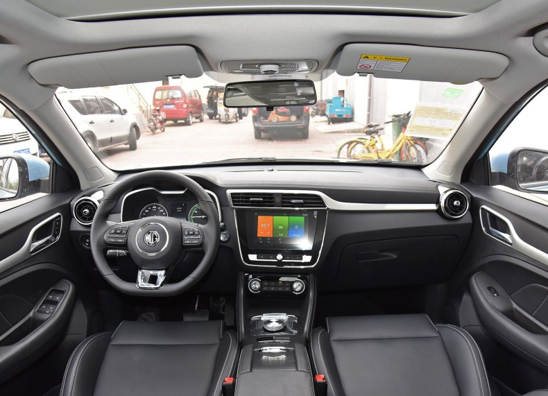 在内饰上,上汽集团-名爵EZS纯电动内饰设计上走运动简约风,这样的设计能够带给人一种直观的亲和感,从视觉方面来看虽然有一些中规中矩,但整体搭配下来整洁耐看。中控台上方采用软搪塑工艺,下方为硬塑料,用料做工在同级同价位属于主流水平。最新版本的斑马智行系统,可支持手机互联、车联网(高配)、GPS导航等功能。整套内饰与燃油版本的不同点在于变速箱挡把:由机械式转为电子旋钮式。换挡旋钮前布置了三个拨杆,用以调节驾驶模式、能量回收和能量流显示。