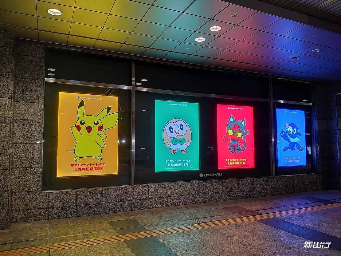 参观完停车场接着行程,在准备走去第一个百货大楼的时候我在楼下看到了“精灵宝可梦”的宣传广告,说实话,作为一个“pokemon”的老粉我还是接受不了宝可梦这一音译,我还是更喜欢叫它们“宠物小精灵”或者是“口袋妖怪”。而在这个宣传广告的楼上也正式大阪的 Pokemen center 在游戏中这个地方就是为主角的宠物进行回血的地方,而现实中这里就是各位口袋迷最爱的地方,各种毛绒玩偶钥匙扣等周边配件应有尽有,就像是童年时候 3 英寸的游戏机屏幕映入到真实世界中一样。而作为老粉自然免不了一顿周边购买。