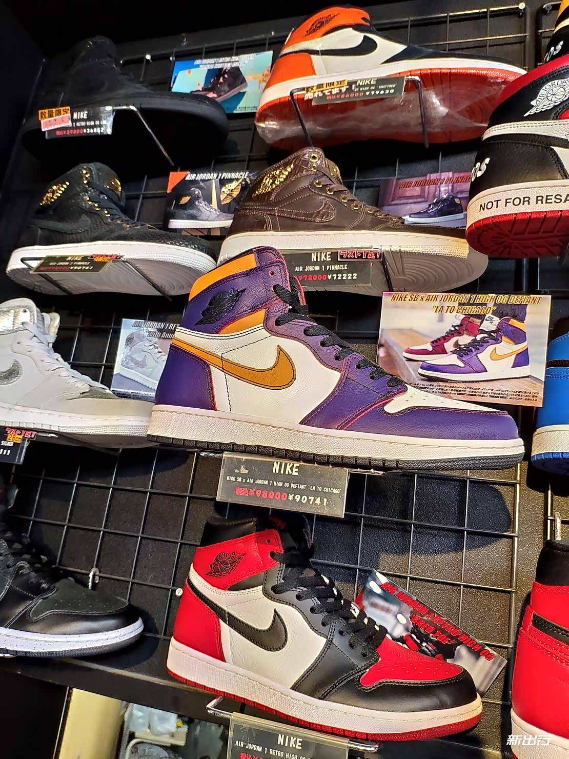 逛完潮店自然免不了去看看当地的私人鞋店,出发之前吴颖微信我让我帮他看看乔 1 的刮刮乐,我也抱着帮他买鞋自己捡便宜的心态去看。在小红书 APP 上搜索到了几家在大阪的私人鞋店,看网友们买的不亦乐乎我也就屁颠屁颠的去了,鞋店的位置在心斋桥附近,这个地方其实就像是国内每个城市都有的一条步行街一样,贵的便宜的应有尽有,只是让我万万没想到的是吴颖让我帮看的刮刮乐乔 1 在国内市价大概 4000 不到左右的价格,在日本折合成人民币竟然要 6000 左右。发给吴颖后他居然对我说“是 6000 日元吗?”后来我对比了几双自己喜欢很久的球鞋后我和我妻子说到:“如果我在这边卖球鞋,估计我现在在开保时捷了。”撤了撤了……