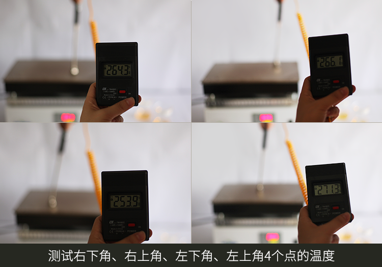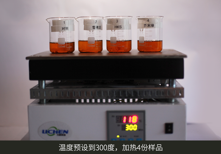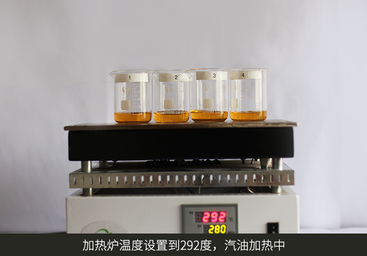 将加热炉设置温度为292度。并用温度测试仪测试每个点的温度,确保4个烧杯放置位置的温度相近;