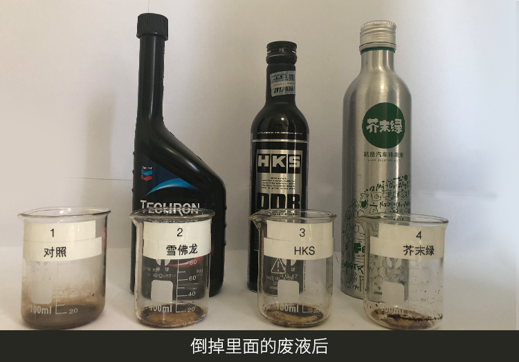 再看看加了HKS的3号烧杯吧,我很期待,因为官方宣传含有70%PEA。最后的结果差强人意吧,有清除掉一部分积碳,但是清除的不是很彻底。