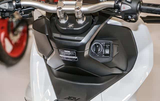 不同于它的老大哥,这款入门级的踏板前风挡是不可调设计,下面依旧采用了和X-ADV一样的液晶大屏,车辆主要的照明系统采用了LED材质,而且就实际的储物空间来说,150ADV的表现也会更好一些。