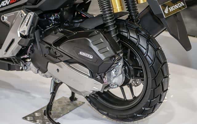 虽然ADV150的外观上和它的大哥一脉相承,但通过我们对于它动力参数的了解和分析,我们认为这款车在也就是在外观上具备了ADV的特征,本田对于它的动力表现调教更倾向于公路环境。这主要在于除了动力和PCX保持一致之外,它在悬挂方面用了一对正向的普通伸缩叉,以及一对SHOWA提供带气囊的后减震,而14英寸的前轮毂搭配13英寸的后铸造合金轮毂,再次明确了它ADV外观下那颗向往公路的心,另外整车是配备了ABS系统的。