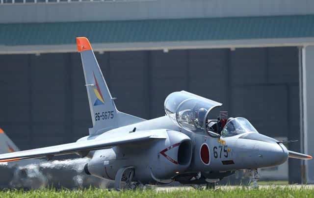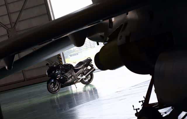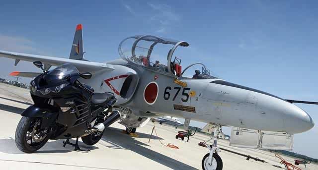 他们将ZX14R开进了日本航空自卫队基地(其实原本他们是想让ZX14R直接和战斗机比划一下,结果被拒绝了,后来自卫队觉得可以试试教练机)。而且很诡异的是这个T4教练机同样也是由Kawasaki(川崎 )公司生产的。