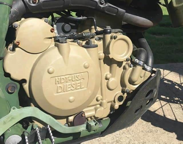 在动力上,其实这款车原来川崎搭载的是汽油发动机,不过在当时汽油不太适用,所以美国一家公司对这款车的川崎汽油发动机进行了拆卸,换了一个自家研发的实际排量为670cc的柴油发动机。