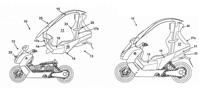 自从2012年BMW发表C650 GT以及C650 Sport以来,慕尼黑车厂的「Urban Mobility都市移动」车系,在这几年间的发展,已经逐渐扩张到400c.c.级距和电动化市场上,近日更有外国媒体挖出了相当有趣的BMW新专利,揭露BMW可能会在下一世代的C EVOLUTION电动大羊上,装上独特的模块化硬顶设计。